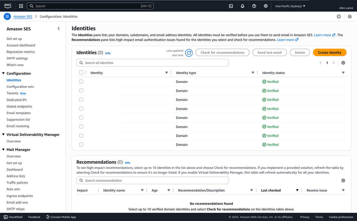 So at the start of 2025 I decided to try something different. I moved the responsibility for sending and receiving email out of my little EC2 frying pan and into the AWS Simple Email Service (SES).