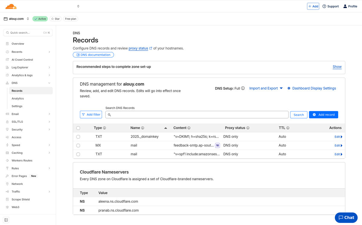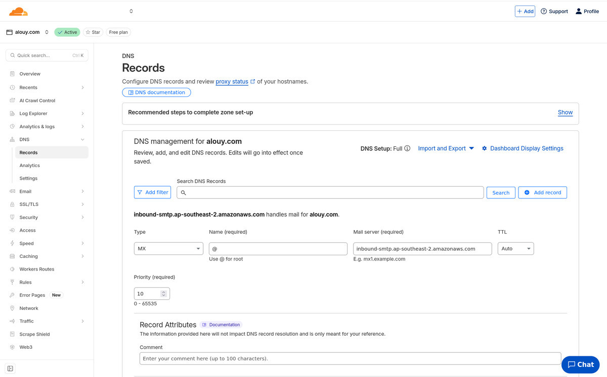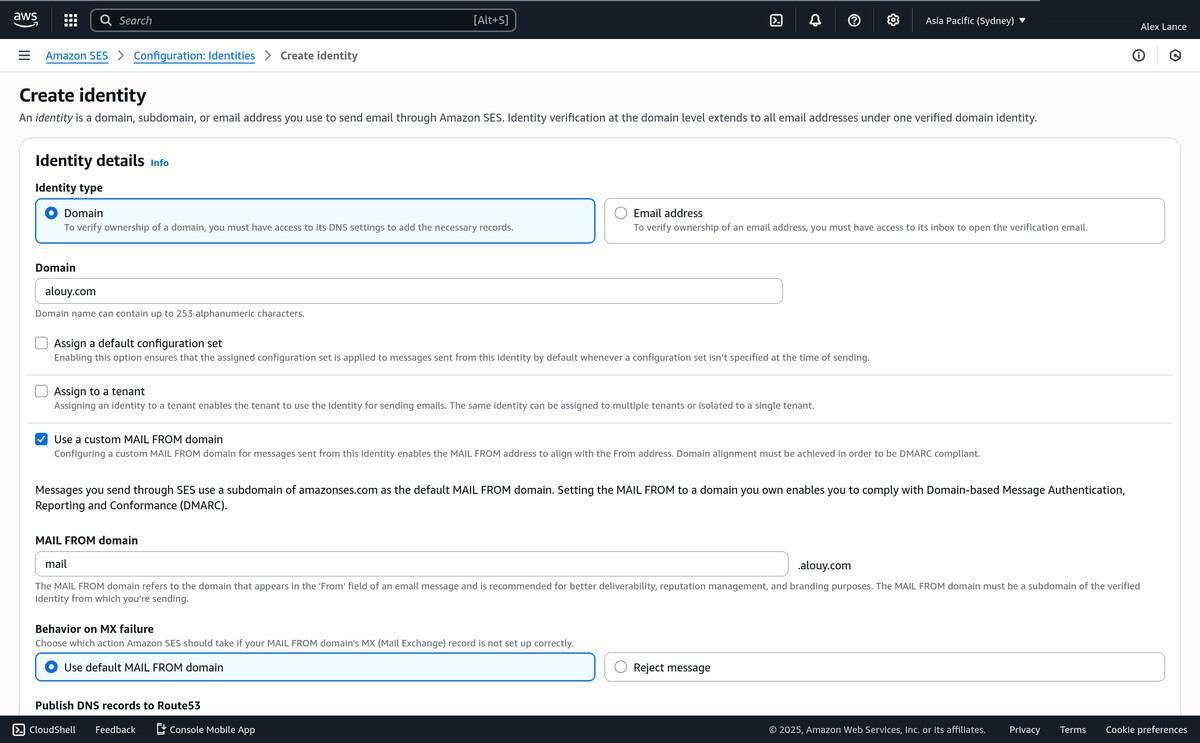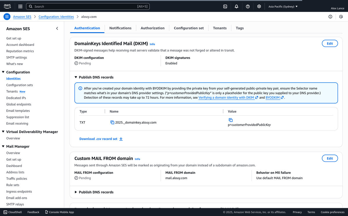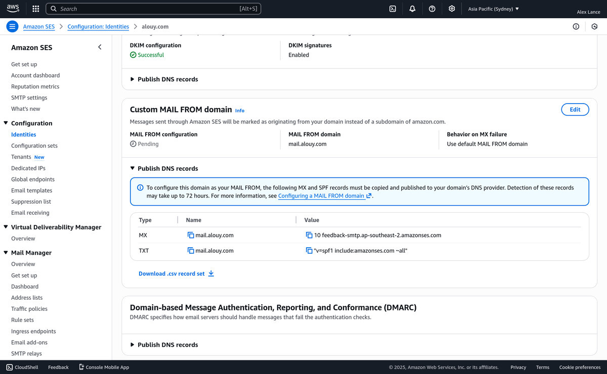Remember how we told AWS we wanted to use mail.alouy.com as our custom
