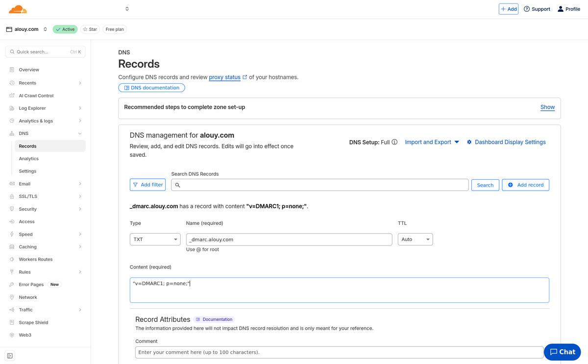 While we're waiting lets add DNS records in for DMARC (Domain-based Message