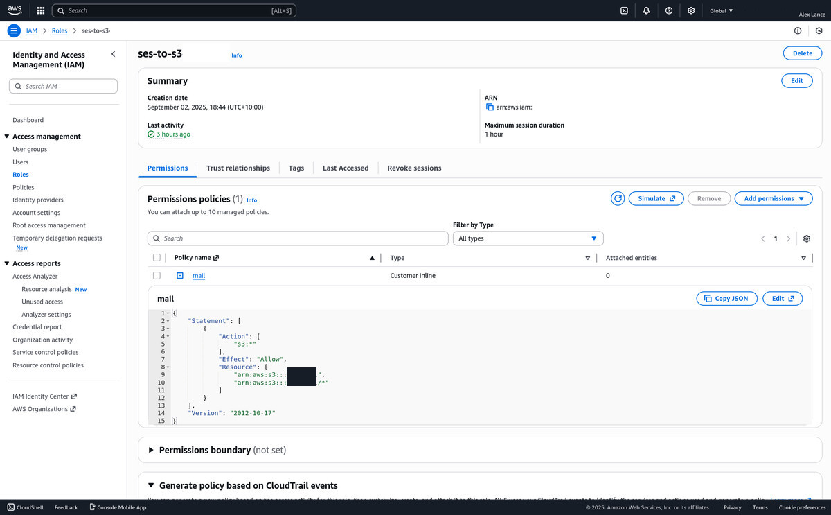 bucket so you can fetch email. Create an access key for the user, and