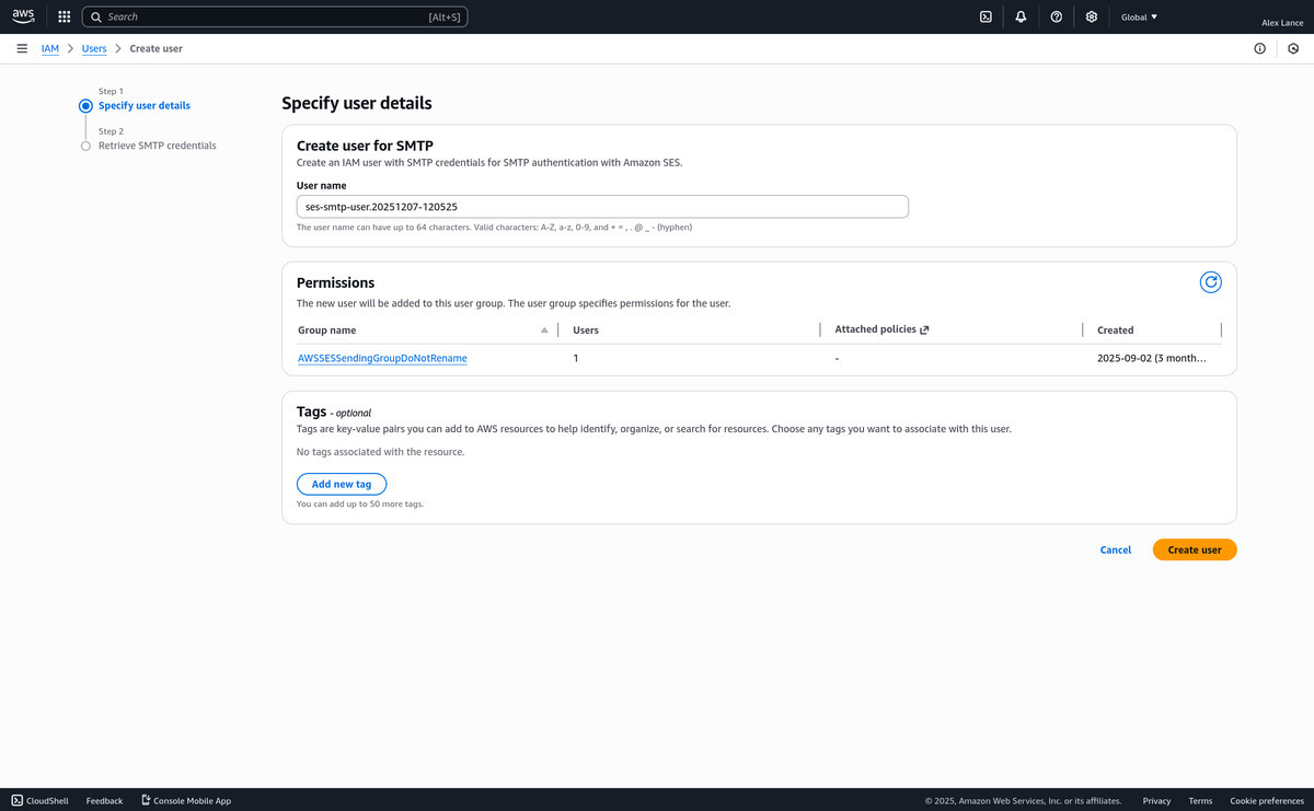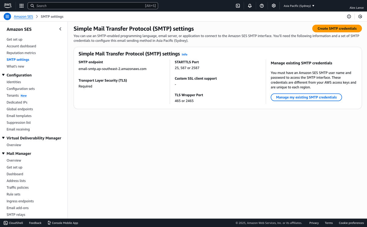 - Email client configured to send email through AWS SES SMTP servers
